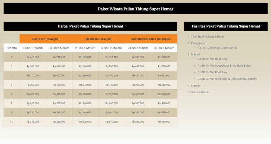 Kemudian untuk lebih memastikan bahwa agen pilihan Anda memang handal, minta informasi terkait fasilitas apa yang akan Anda dapatkan. Sangat penting juga untuk memahami fasilitas yang akan Anda dapatkan saat mengunjungi destinasi di Pulau Seribu.